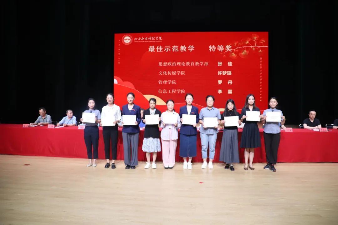 表彰大会前,第三届全国高校教师教学创新大赛文科中级及以下组二等奖获得者文化传媒学院王丹教学团队分享了大量教学竞赛技巧和方法,通过一节完整课堂讲授课程概述、创新思路、创新举措、具体案例,新颖的教学设计、教学思路赢得现场教师阵阵掌声。