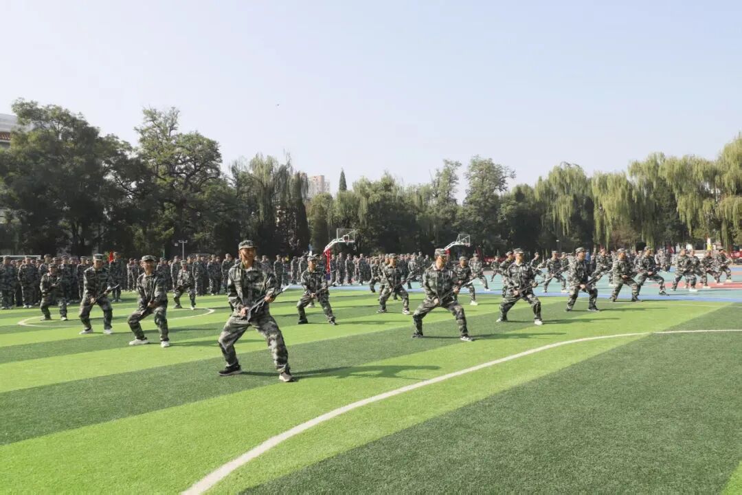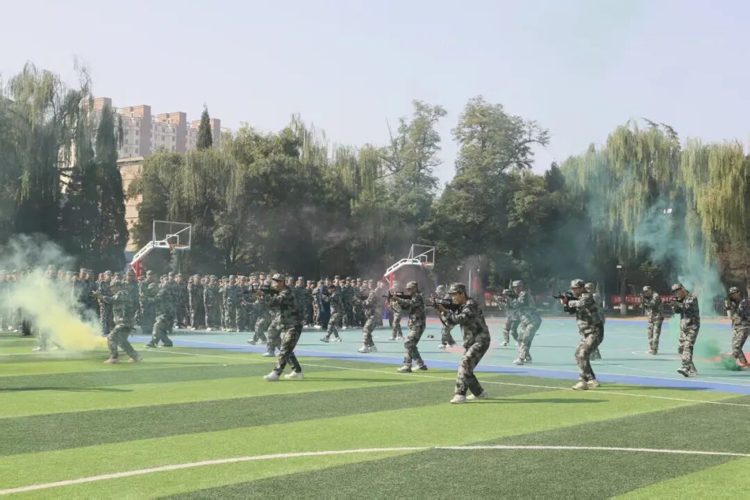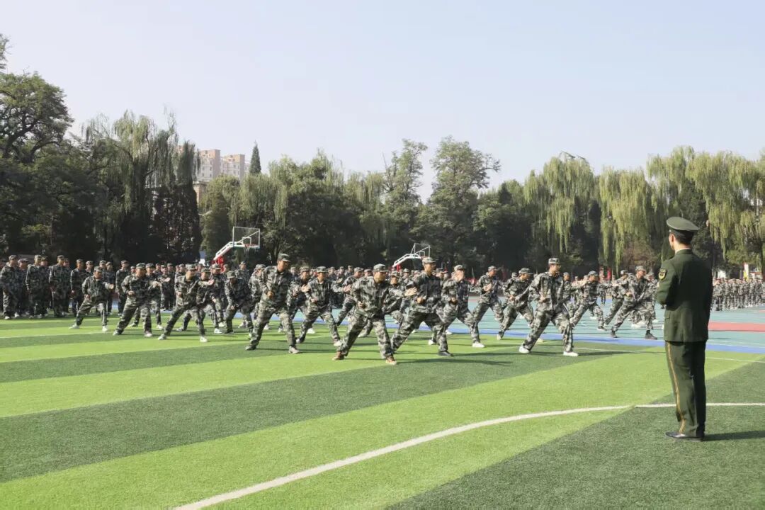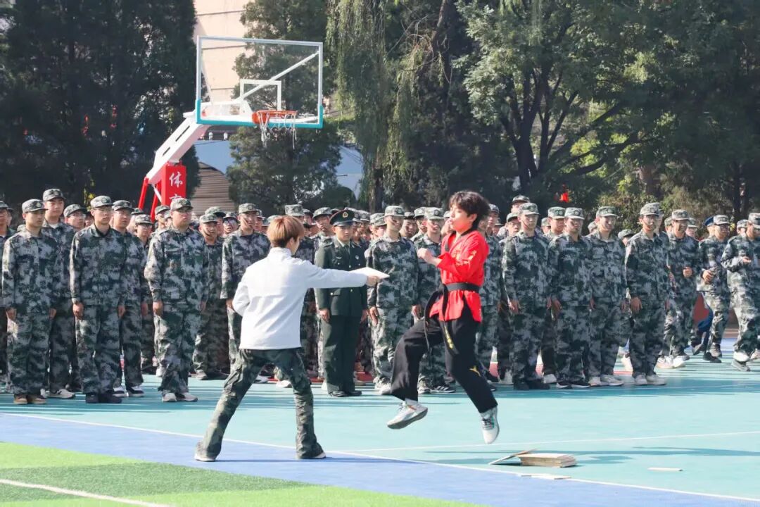 历经十余天的淬炼与成长,全体2025级专科新生以挺拔之姿、昂扬之态接受检阅。各方队新生迈着整齐有力的步伐依次入场,他们身姿挺拔,眼神坚定。在教官的指令下,新生们进行了立正、稍息、跨立等一系列基本军事动作展示,动作整齐划一,规范标准。在紧接着的军训科目汇演中,教官们率先登场,带来了精彩的擒敌表演。他们身手矫健,动作刚劲有力,一招一式尽显专业与威严,引得现场掌声雷动。随后,同学们也不甘示弱,依次展示了擒敌拳、刺杀操、匕首操。擒敌拳表演中,同学们出拳如风,踢腿似电,每一个动作都充满了力量感;刺杀操表演时,他们手持“钢枪”,目光锐利,刺杀动作干净利落,仿佛真的置身于战场之中;匕首操表演更是精彩绝伦,同学们手持匕首,灵活地变换着姿势,或刺或砍,尽显英勇无畏。跆拳道表演环节,同学们精神抖擞,灵活地移动脚步,快速地出拳踢腿,各种高难度的动作信手拈来,将跆拳道的魅力展现得淋漓尽致。最后的军训战术表演将整个汇报推向了高潮。同学们模拟实战场景,迅速而有序地进行战术动作,时而隐蔽前进,时而快速出击,展现了良好的团队协作能力和战术素养。