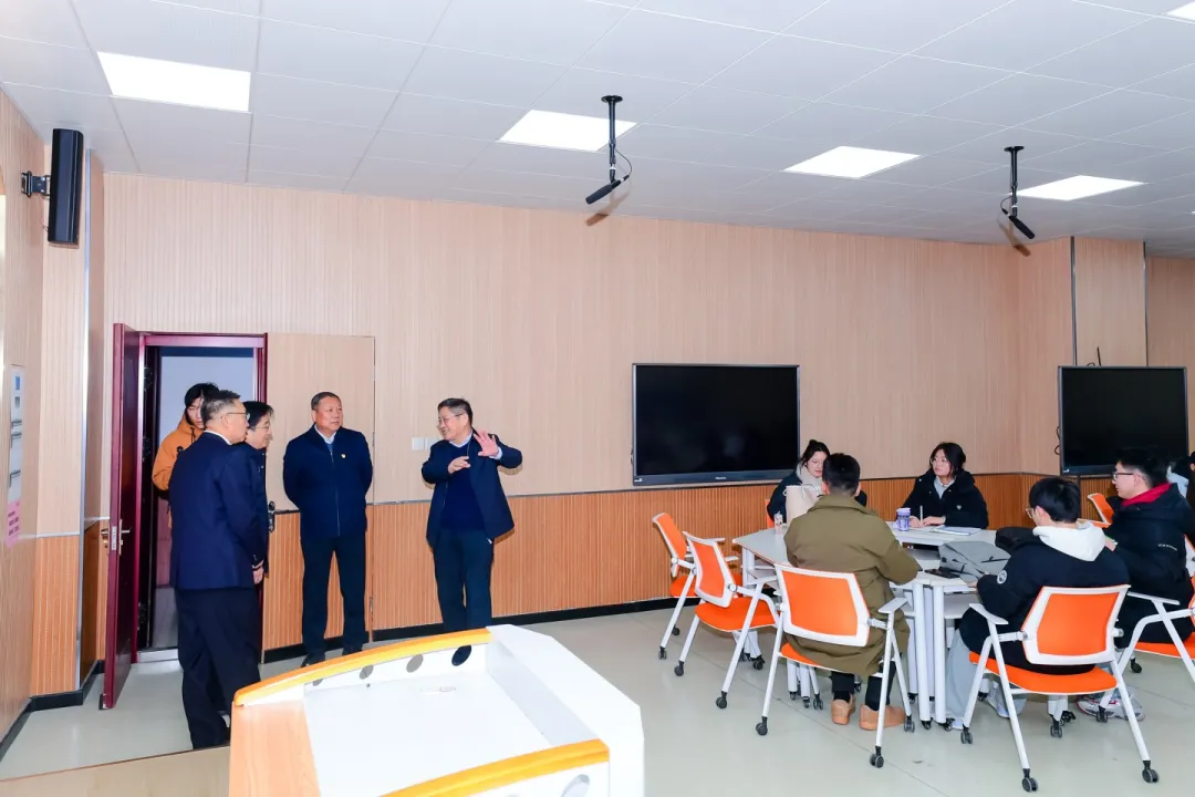 会后,白培康一行在我校领导陪同下,参观了修建性详规、智慧教室、拓荒精神教育基地和全国党建样板支部。在拓荒精神教育基地,白培康一行深入了解了我校的发展历程、办学理念与精神文脉,赞赏我校在服务国家战略与地方发展中取得的成绩。在美术学院第一党支部,双方就基层党组织标准化规范化建设、特色党建品牌创建、党建与业务深度融合等议题进行了现场交流,分享了各自在激发支部活力、发挥党员先锋模范作用、党建育人等方面的有效实践。