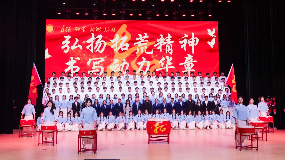 动力与电气工程学院学子男女分别身着白色和淡蓝色民国时期服装,历史的厚重感与本次活动主题相契合。他们的自选曲目《中国男儿》节奏紧凑、气势恢宏。坚定有力的歌词、舞蹈、敲鼓与挥动的“拓”字旗帜交相辉映,抒发了中国男儿的豪迈情怀,表达了动力学子在“拓荒”精神引领下不断创造新辉煌的决心。