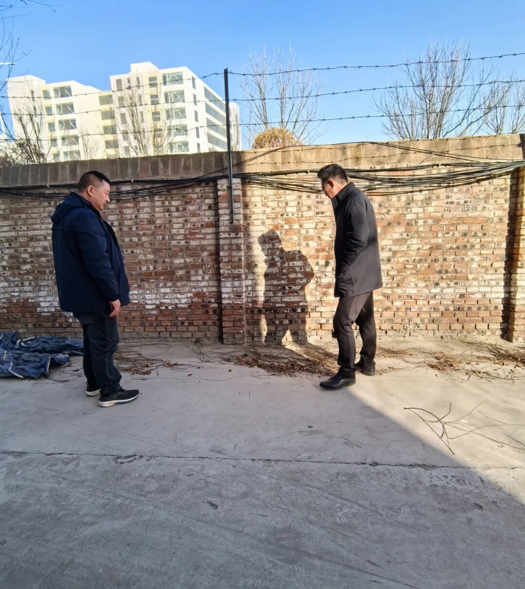 为切实做好寒假期间校园安全防范工作,堵塞安全漏洞,筑牢校园安全防线,保障寒假期间校园财产和留校师生人身安全。1月16日上午,贺有副校长带领安全保卫处王金山处长,,对整个校园进行了全方位的检查。重点查看了校园安防关键点位、监控室、锅炉房、学校值班室、校园围墙及门卫等场所。