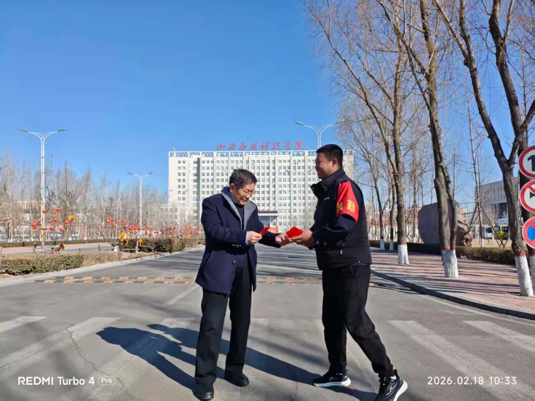 校领导的亲切关怀与暖心问候,让全体值守教职工倍感温暖、深受鼓舞。大家纷纷表示,感谢校长和学校的关心与厚爱,定会将这份温暖转化为扎实工作的动力,坚守岗位、恪尽职守,以高度的责任心和使命感做好春节期间各项保障工作,全力维护校园安全有序,用坚守与担当守护校园祥和,为学校新一年的建设与发展筑牢坚实后盾。