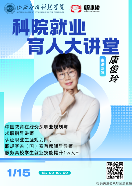 为帮助2026届我校毕业生深入了解职业规划、拓宽就业发展路径,招生就业处在1月15日、2月10日,分别邀请中国教育在线资深职业规划与求职指导讲师康俊玲、职业规划高级指导导师孙振明,开展《科院就业育人大讲堂》系列专题讲座。两场讲座在线观看人数合计近千人。讲座中,两位导师结合自身丰富经验,分别从职业规划核心逻辑、求职实战技巧、创业就业赛事指导等方面展开分享,为学子们提供了系统且实用的职业发展方法论。本次就业育人大讲堂的成功举行,不仅让毕业生对职业生涯规划有了更清晰的认知,还为他们搭建了对接专业资源的桥梁。同学们纷纷表示,讲座内容贴合求职实际需求,对自身明确职业方向、提升就业竞争力具有重要指导意义,有助于在未来职场中找准定位、稳步前行。