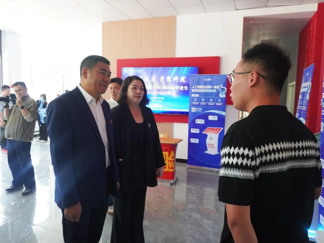 招聘会期间,学校执行校长迟云平、副校长贺有亲临现场指导就业工作,先后走访各企业展位,与招聘负责人深入交流,详细了解企业人才需求、岗位设置、发展前景及校企合作意向;同时与到场的校友企业亲切交谈,感谢校友回馈母校、助力学弟学妹就业,勉励校友企业持续发挥桥梁纽带作用,深化与母校在人才输送、项目合作等方面的协同联动。领导们还与现场求职学生亲切交谈,询问求职方向、应聘情况与就业期望,鼓励大家把握机遇、主动出击、理性择业,以积极饱满的状态迎接职场挑战。领导的悉心指导与关怀,为招聘会有序开展、提升就业服务质量提供了有力保障。